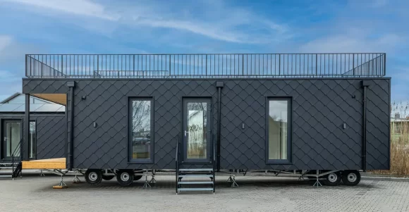 Casa prefabricada con estructura de acero, con opción de ser utilizada como casa móvil.