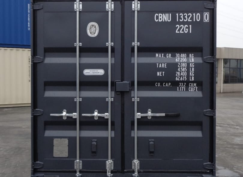 El contenedor está equipado con dos puertas robustas que se abren hacia el exterior por un solo lado, con un sistema de cierre resistente que incluye 4 pestillos verticales. Las puertas se abren hasta 270 grados.