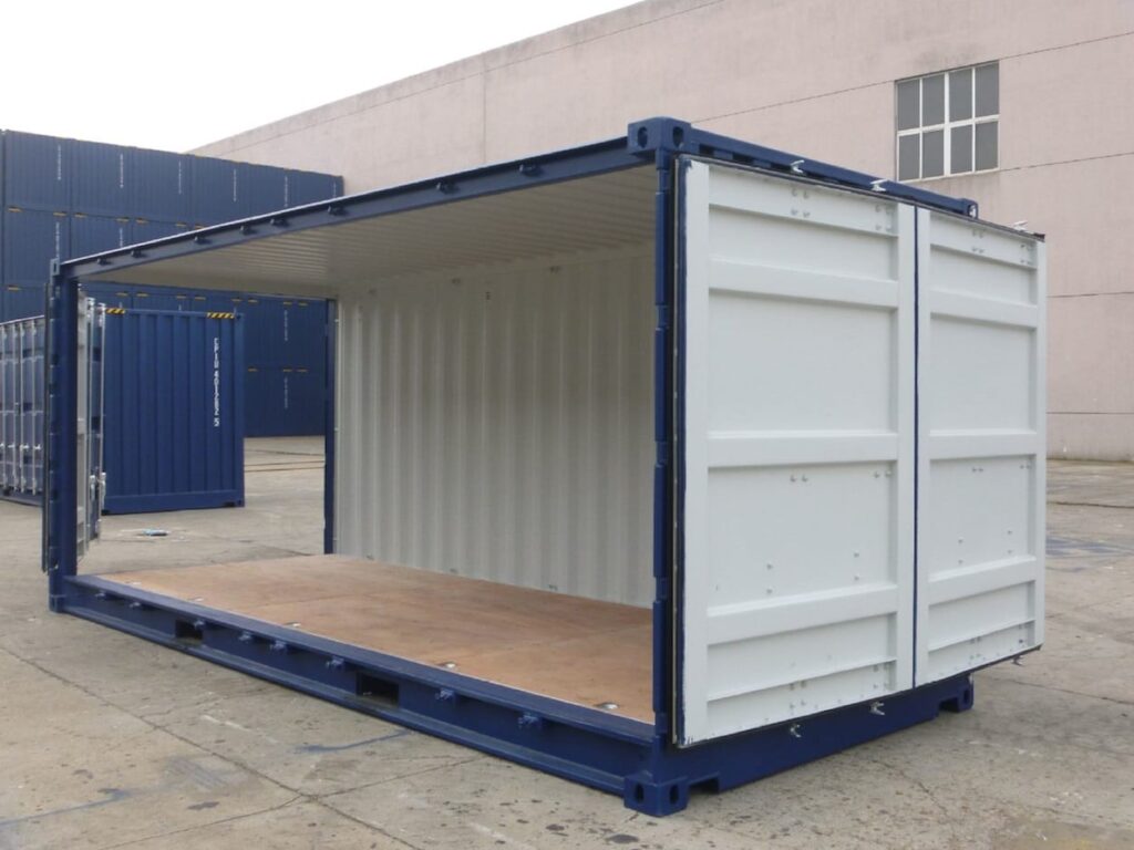 El contenedor Open Side de 20 pies también es ideal para almacenamiento. Su estructura completamente de acero Corten lo hace altamente resistente a robos. Las paredes están compuestas de chapa ondulada y vigas longitudinales, sobre las cuales se coloca un piso de contrachapado marino de 28 mm de grosor.