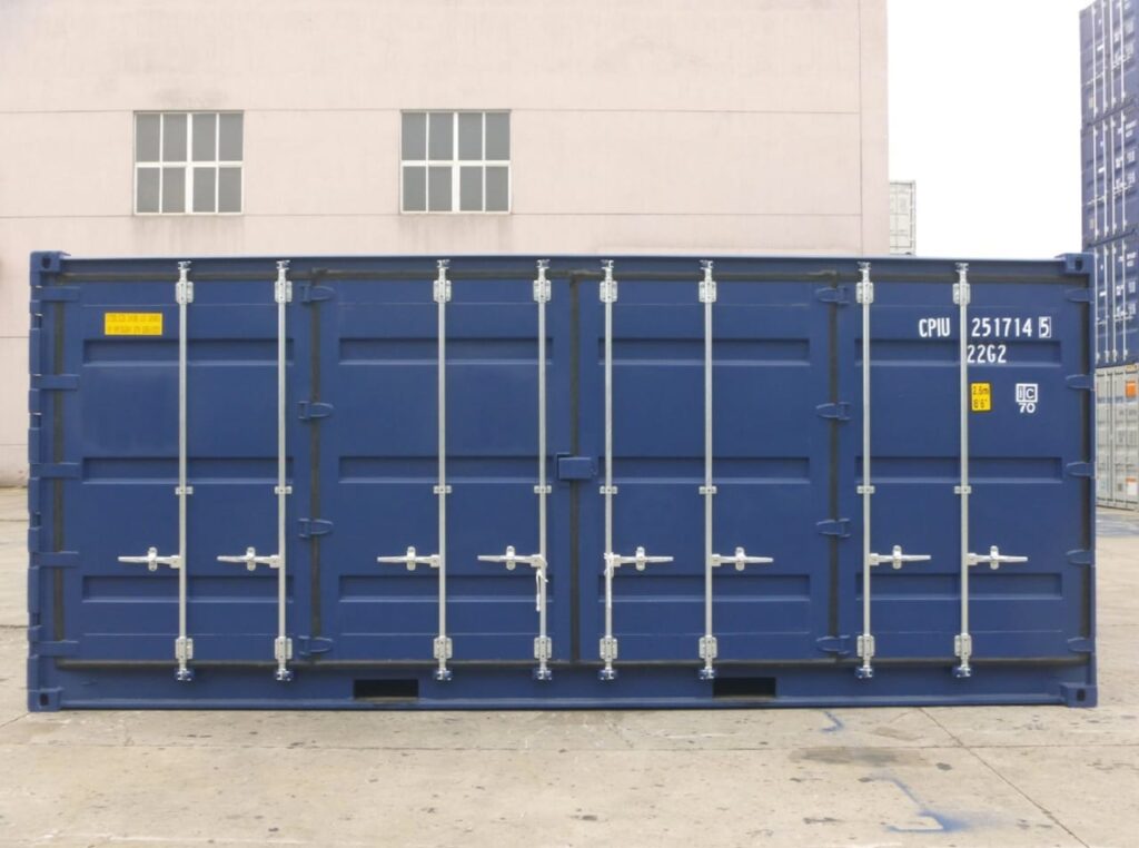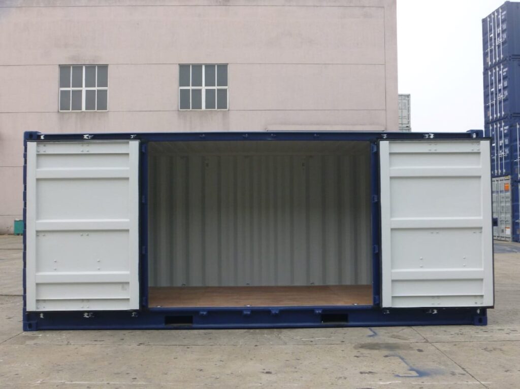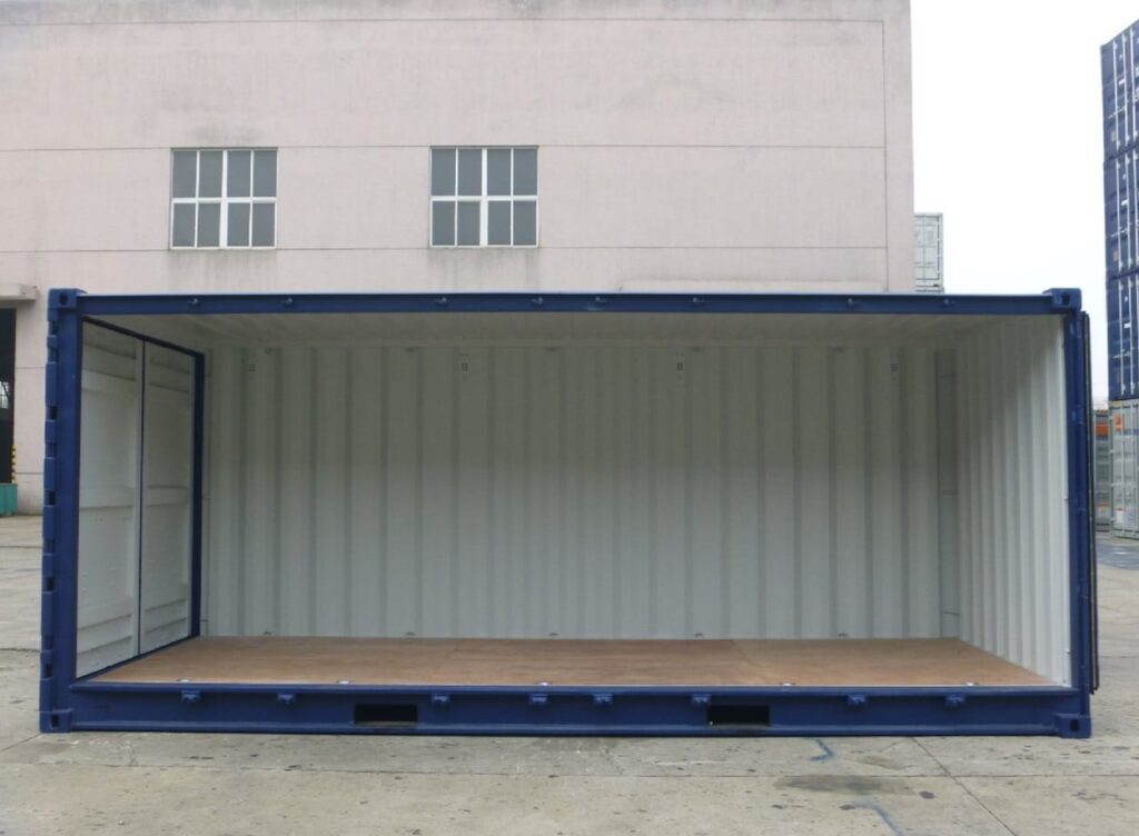 Este contenedor marítimo Open Side de 20 pies se abre principalmente por su lateral, pero también puede abrirse por ambos extremos. La abertura lateral es completa, sin montante central, lo que facilita el acceso. Las puertas dobles se abren hacia los laterales y están equipadas con candados para garantizar la seguridad en el acceso.