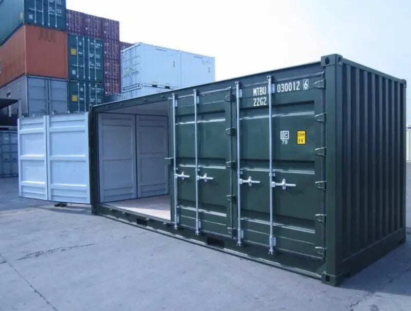 Este contenedor de 20 pies Open Side también se emplea en actividades de almacenamiento. Su estructura de acero Corten lo hace altamente resistente a robos. Las paredes están hechas de láminas onduladas y largueros, con un piso de madera contrachapada marina de 28 mm.